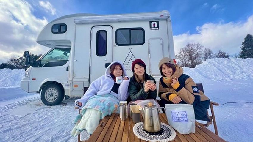 車中泊女子3人が冬の北海道でキャンプ!